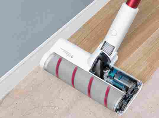 En plus de la tête d'aspiration de la brosse à rouleau, il est également équipé d'une tête d'aspiration plate deux en un, qui vous permet de nettoyer une grande surface et d'aspirer les saletés au sol.